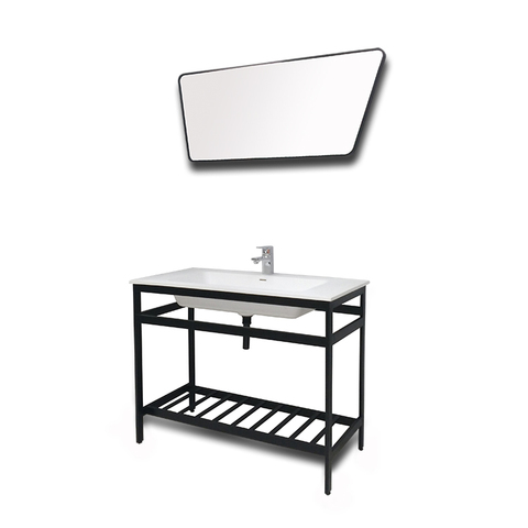 36 ''블랙 컬러 스테인레스 스틸 수지 싱크 콘솔 욕실 화장대, 독립형 세면대 거울 캐비닛