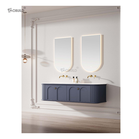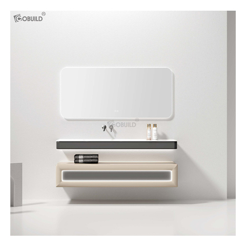 홈 바 또는 빌용 스마트 미러가있는 욕실 화장대 방수 코너 캐비닛을위한 현대 호텔 스타일 단단한 나무 플로팅